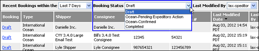 Figure 2: Booking Status - Ocean Statuses