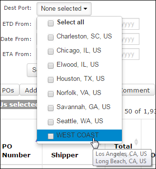 New Fields - Vessel Ports You can now specify the Vessel Origin Port, Vessel Discharge Port and Vessel Destination Port to filter by POs using those ports. See View Allocation Plan - PO View for more information.