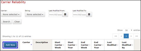Carrier Reliability page